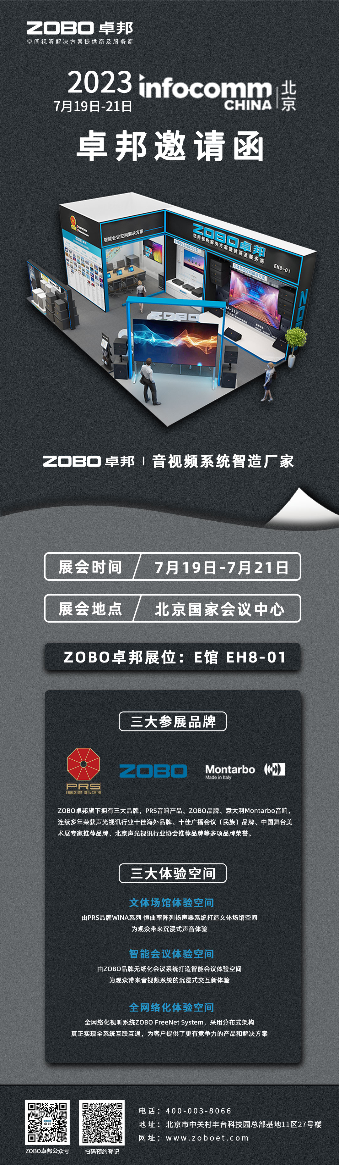 本次ZOBO香蕉视频APP在线观看展位(E館EH8-01),分為文體場館空間、智能會議空間、全網絡化空間。在這裏,您將一覽擁有前沿技術的多款音視頻產品和完善的空間視聽解決方案。
