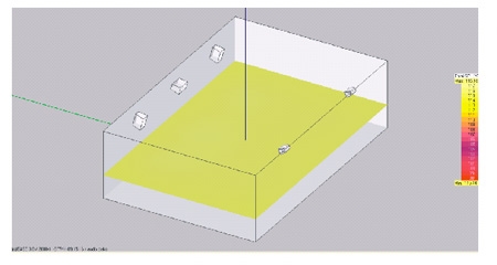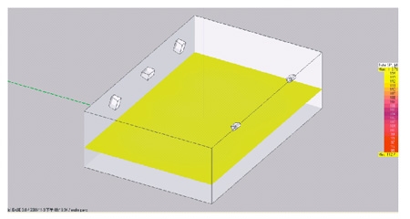 此圖可讓你直觀的知道聲壓是否達到指標,在這裏廳堂的大部分麵積聲壓達到107dB超出一標準,並擁有足夠的預量,能保證係統可靠的運行